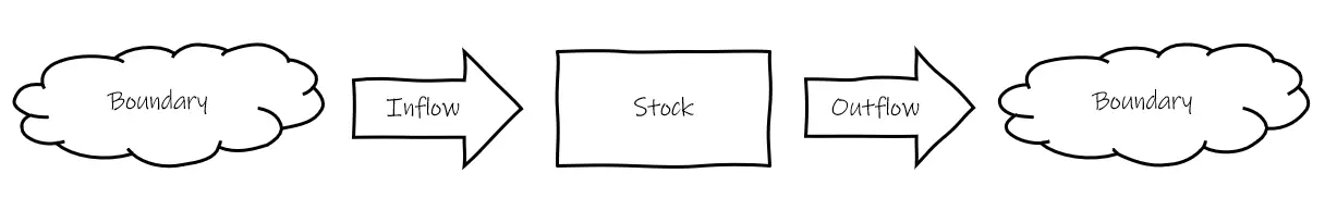 The behavior of a system breaks down into stocks and flows. Stocks are the elements of a system that can be accounted for at any given time or things that you can see or touch. For instance, water in a bathtub, books in a store or money in a bank, etc.